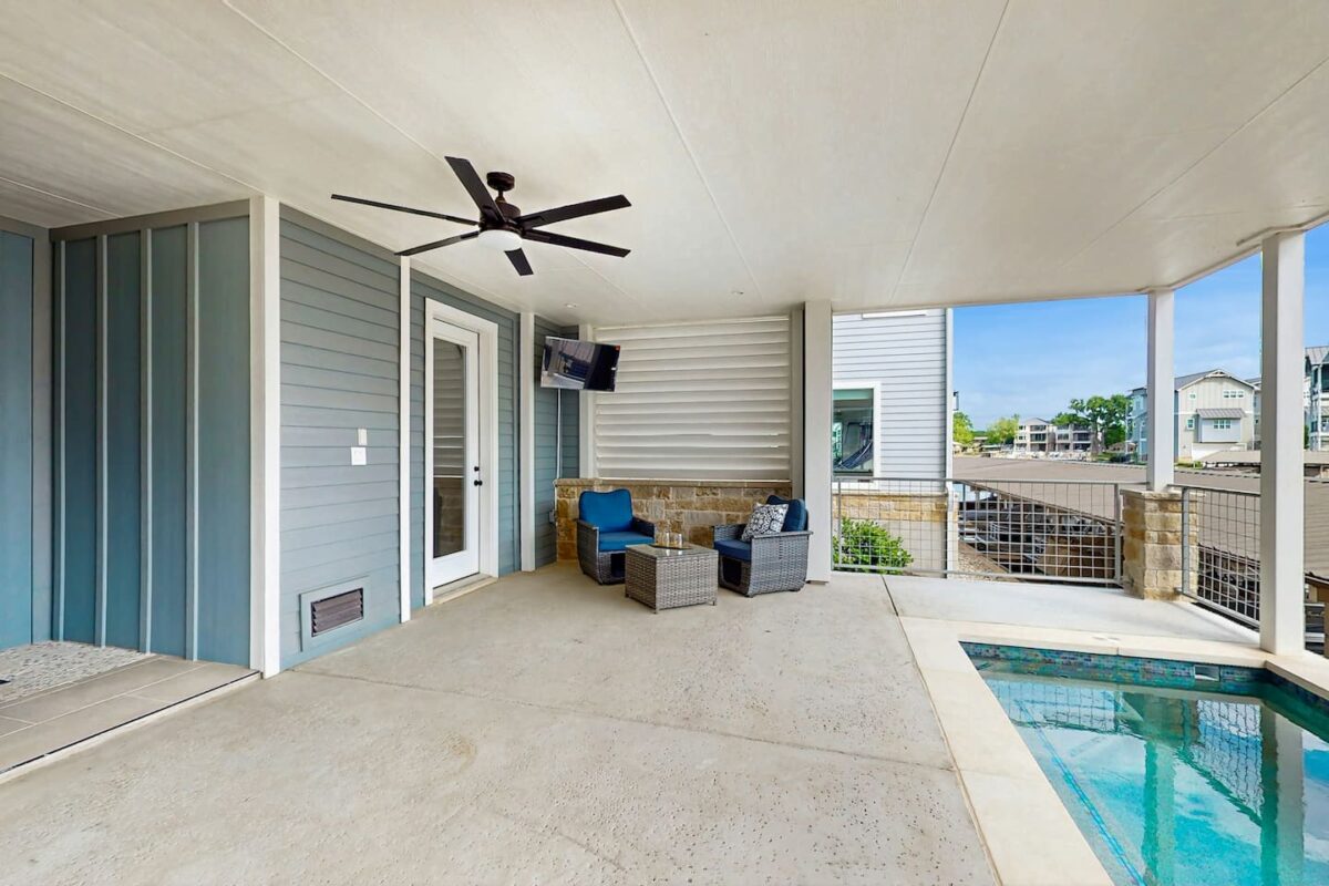 Blue Water Bluffs is a spectacular 3BR/4.5BA waterfront home on Lake LBJ. Welcome to your dream retreat on the tranquil shores of Lake LBJ. Tucked within a prestigious gated community, this impeccably styled home offers the ultimate blend of upscale comfort and serene lakeside charm. Whether you’re planning a romantic getaway or a family vacation, this elegant residence promises an unforgettable escape.