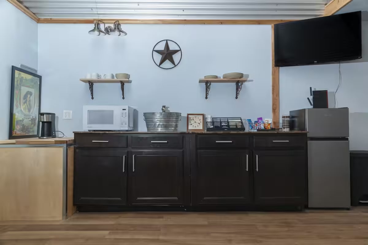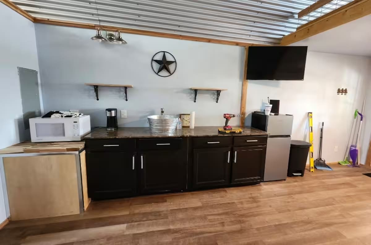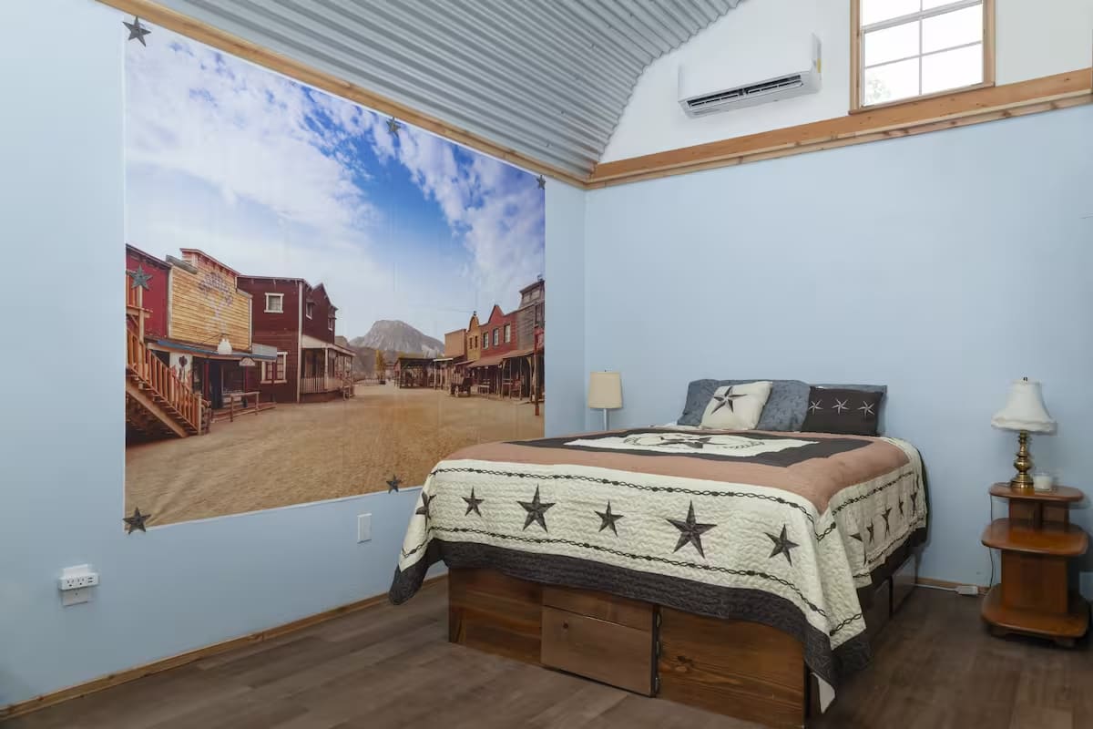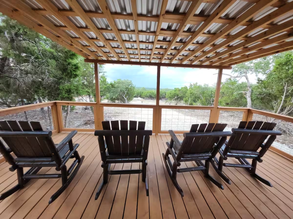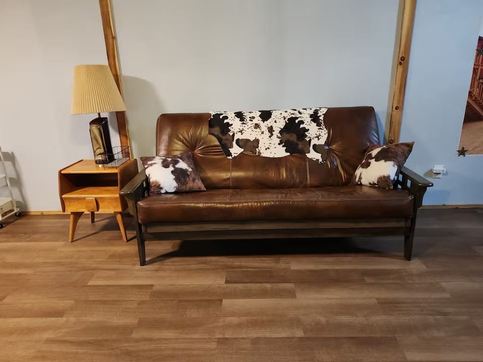 Enjoy a memorable visit when you stay in this unique place. Cowboy Cabin is decked out in a cowboy theme. The cabin has a great view of the South San Gabriel valley from the large porch. The cabin is on a working ranch. Guests will love glimpses of chickens, goats, cats and various wildlife. Plenty of walking space and trails at this one-of-a-kind vacation spot.