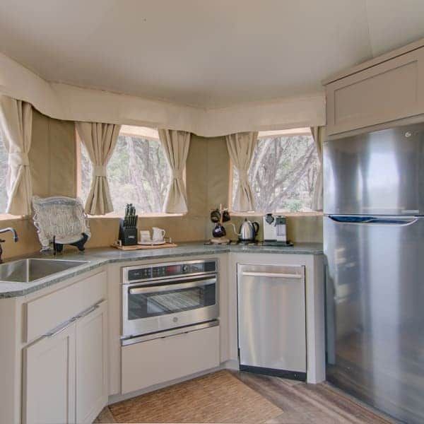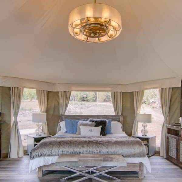 Ndotto is our custom-designed safari tent perfect for two. It is tucked away for a magical, romantic retreat. A king-sized bed, plush living space, contemporary kitchen, and breathtaking views make Ndotto stand out. Rustic nature accentuated by the smooth hardwood floors, luxurious finishes, modern fireplace, and delicate hanging chandeliers.
