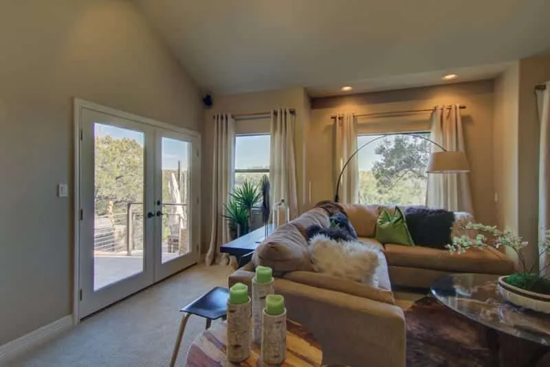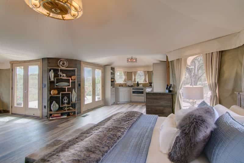 The Casita which sleeps 1-4 guests will bath them in beautiful, luxurious comfort. A gorgeous stonework exterior beautifully compliments the earthy wooden finishes inside. The main living areas contain every modern amenity and comfort needed. The spacious, open floor plan has lofted ceilings and large windows. A king bed and state-of-the-art kitchen make this space outstanding.