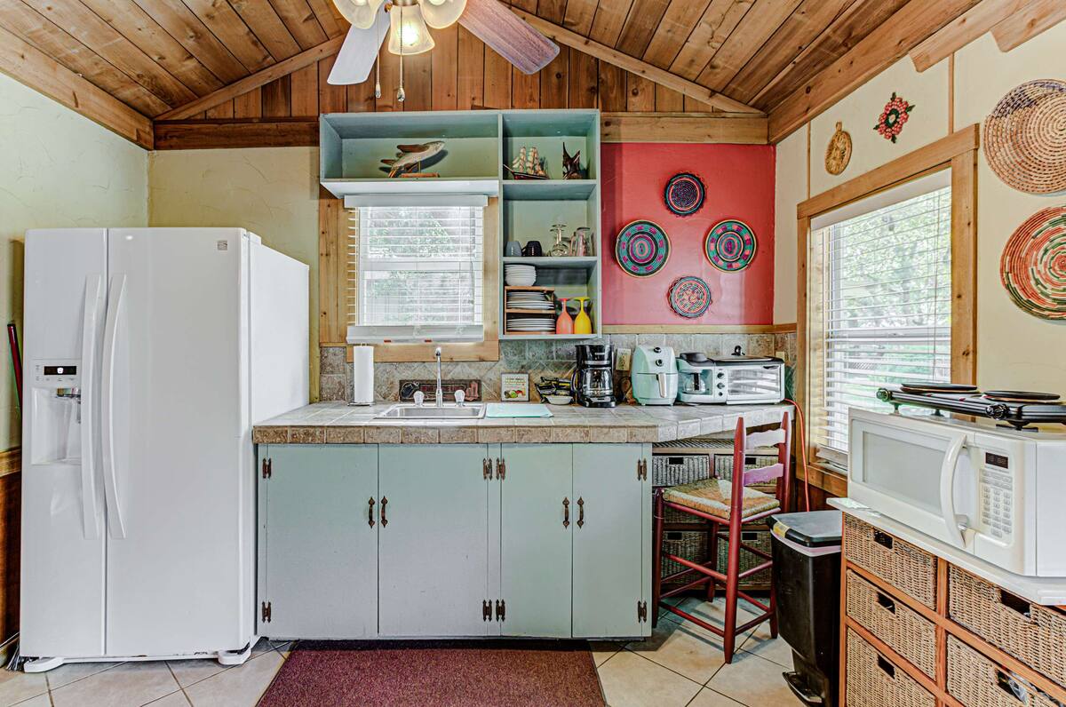 Kingsland Casita is perfectly located for access to water sports such as boating, fishing, paddling, or just soaking in the sun. The cottage is a short distance from Lake LBJ access and the community covered deck and boat launch. Out back fire up the propane grill or charcoal smoker and picnic or dine under the shade of the natural canopy and take in the lake views of a quiet cove on Lake LBJ. Kingsland Casita is conveniently located near hiking, shopping, wineries, and breweries in Marble Falls and nearby Kingsland.