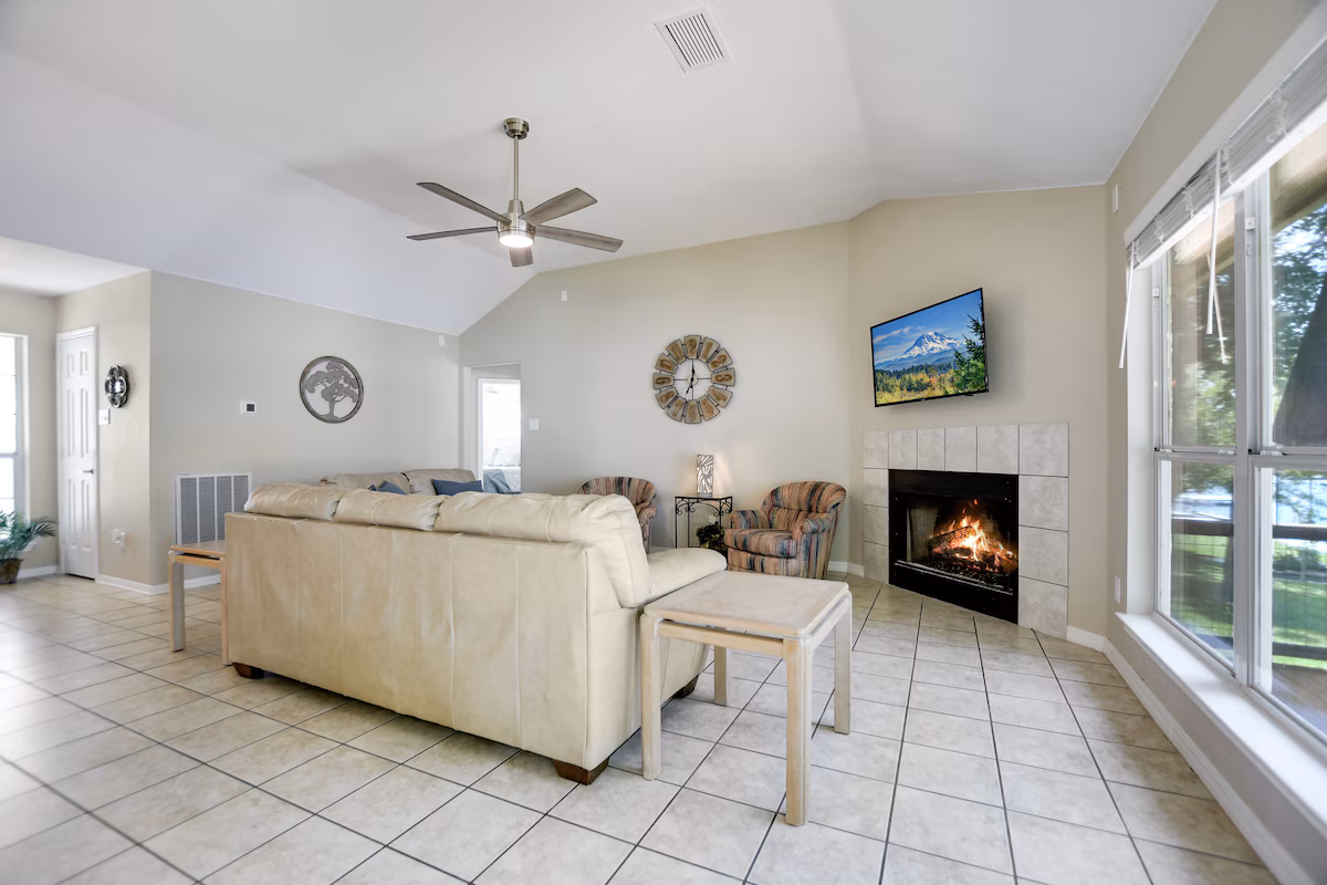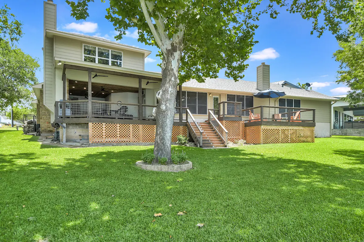 Come relax and enjoy beautiful Bella Casa Sal Lago, a Lake LBJ waterfront 4BR/3.5BA home located on 100′ of open lake front. This clean and inviting home is situated along 100 feet of open water with fantastic sunset views and is ideal for multiple families to spend time together at the lake.