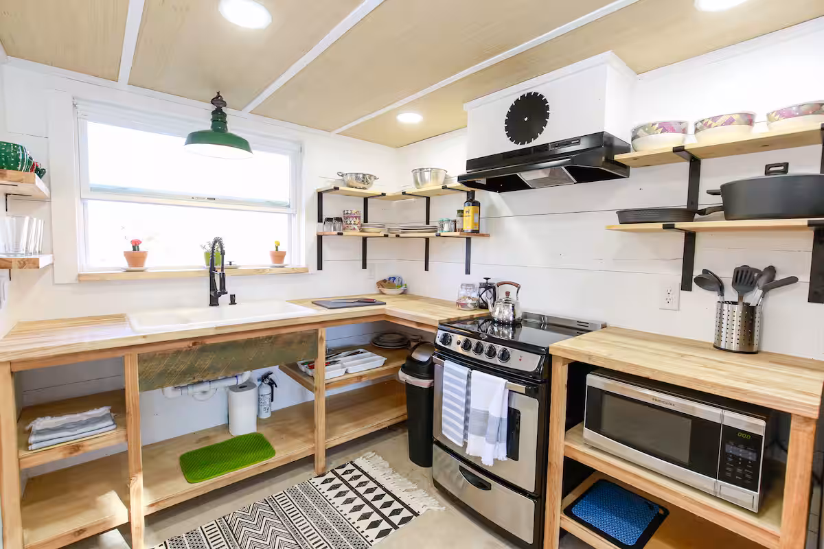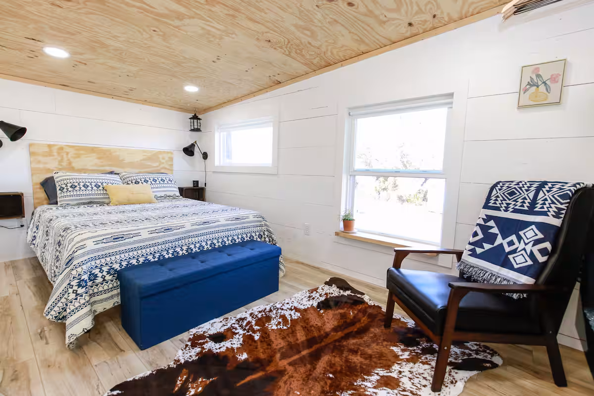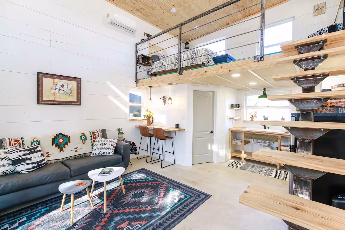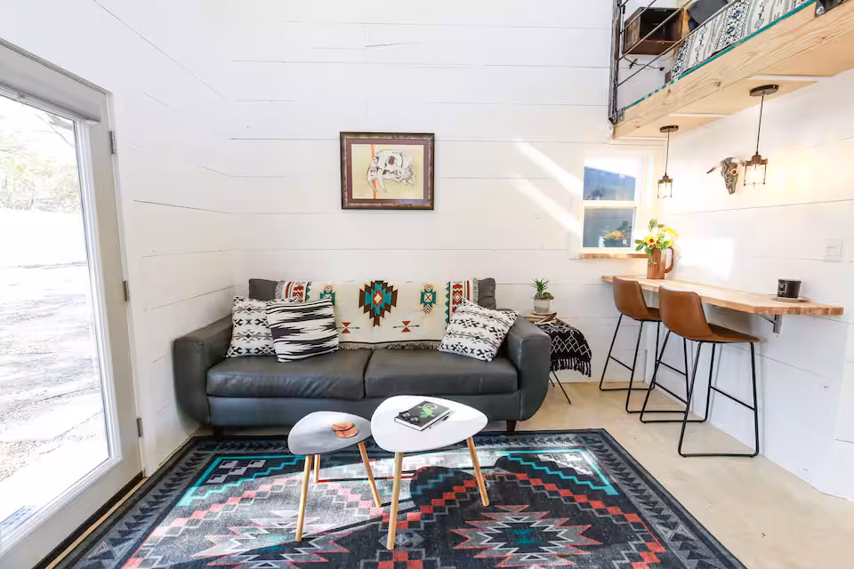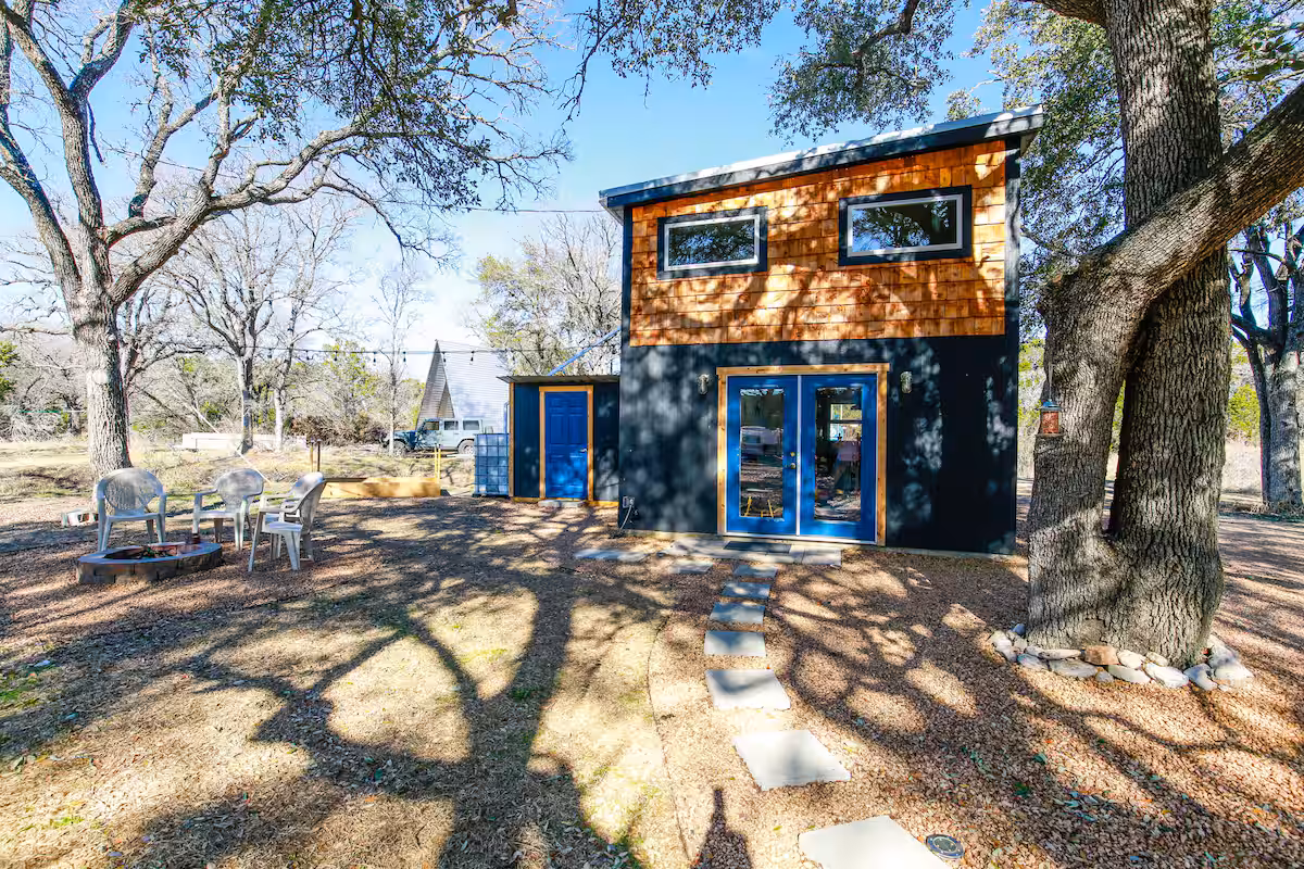 The Nature Loft is a lovingly crafted space designed to elevate you to the trees. This tiny home is nestled under Oak trees in a small tiny house community in the heart of the Hill Country, located on 8 acres of prime hill country beauty. On the land you will find a seasonal creek, a pond and 4 other unique tiny homes with plenty of space for privacy.